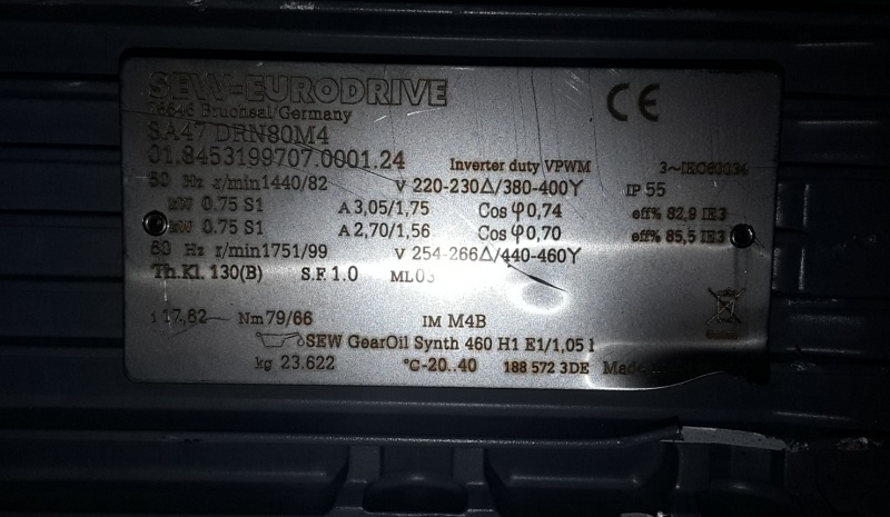 Reductor SEW 0.75 kw, 82 rpm (i=17.82)