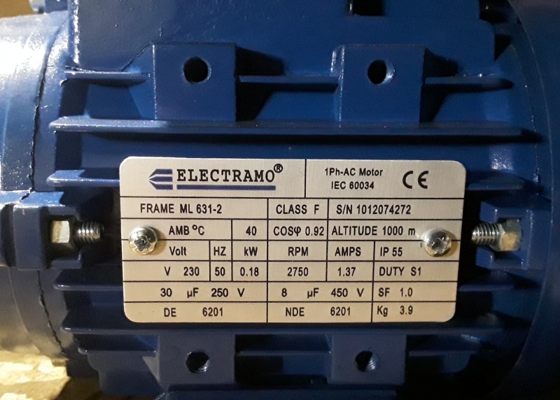 Elektromotor Electramo 0.18 kw, 2.750 rpm 230 volt